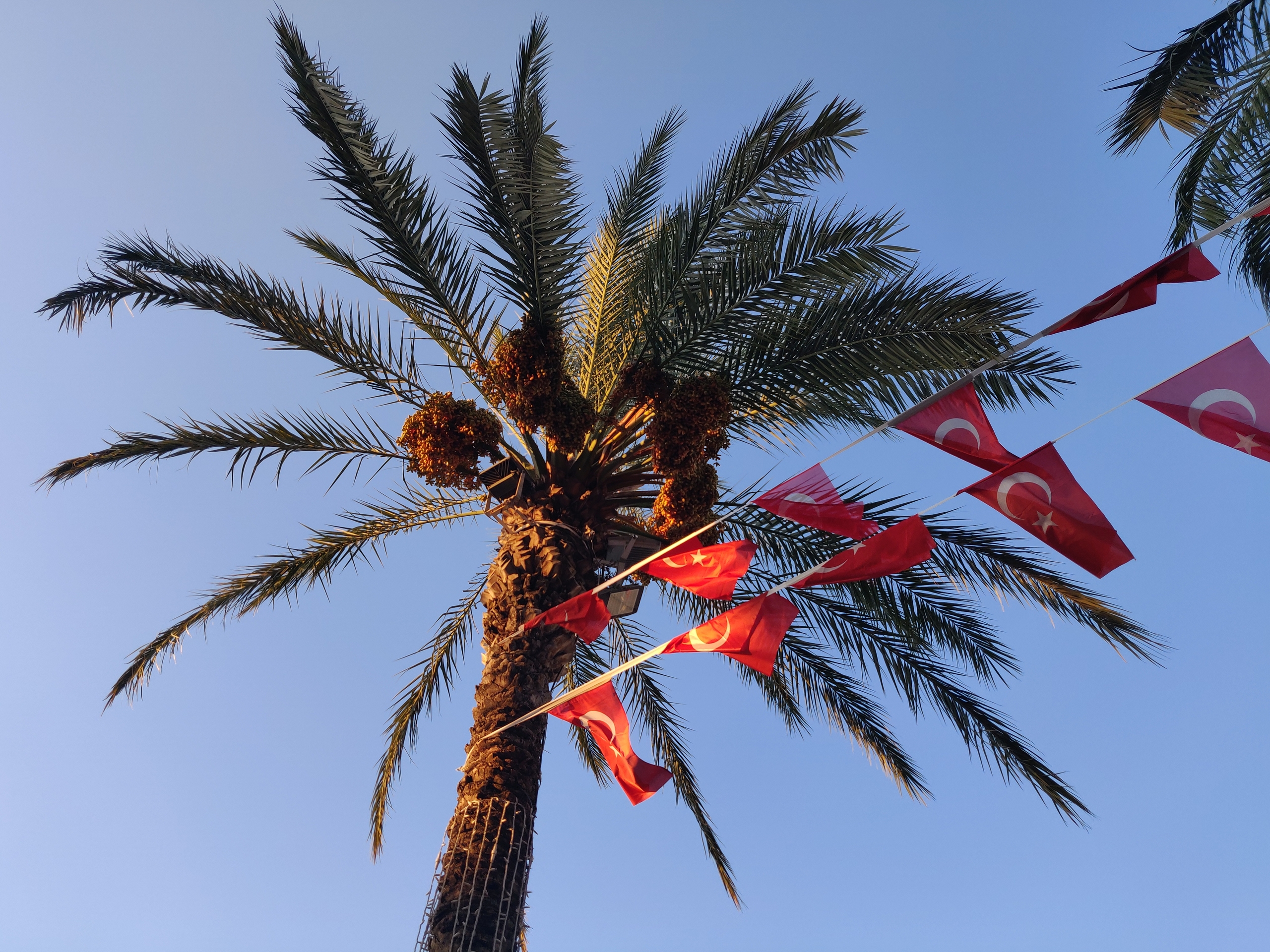 We wake up to a riot of sun rays. The chunk of blue Gulf of Izmir seen from our window, the rows of perky narrow buildings glued together and topped with clay roof tiles, the intermingling of exuberant exotic trees below our balcony - everything is joyfully drowning in sunlight. The warm seaside air gushes through the open window luring us outside.